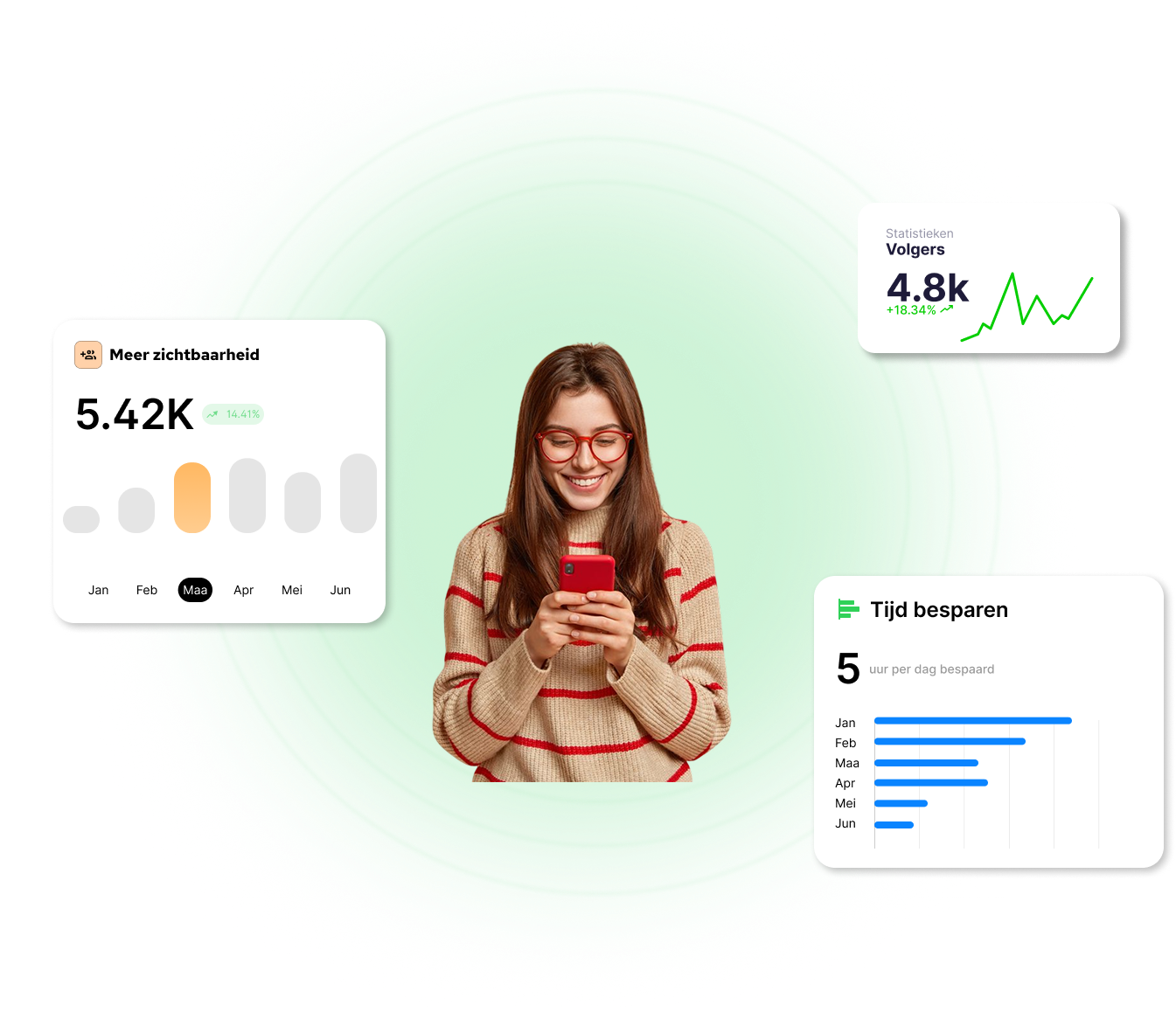 Wij dragen zorg voor de groei van jouw pagina. Hierdoor houd jij meer tijd over en bespaar je tot wel 12 uur per week.